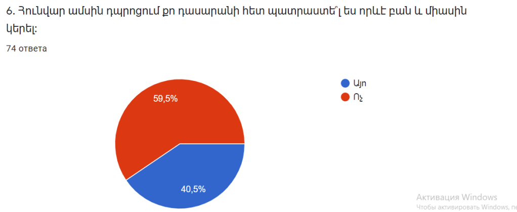 8. Քո առաջարկը դպրոցին՝ սննդի կազմակերպման մասով: Պատասխաններ.